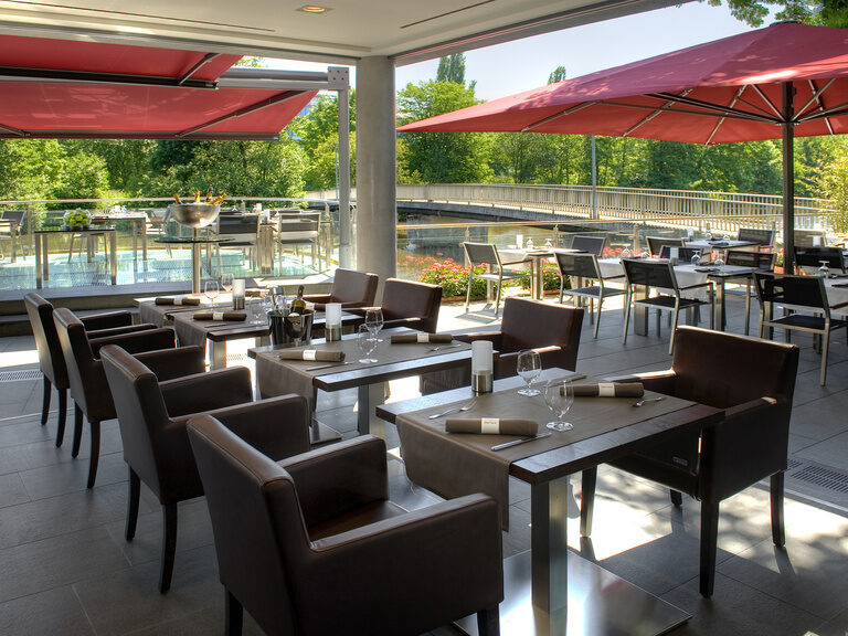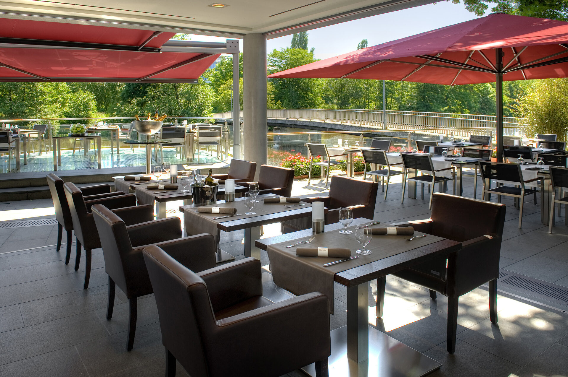 Der Sonnengeflutete Raum mit Zugang zur Enz Terrasse bietet genügend Platz außerhalb der Frühstückszeit, für Veranstaltungen und Tagungen bis zu 20 Personen.