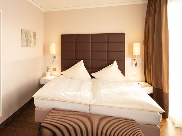 Spend romantic nights in the modern double rooms with a view of the Enz.